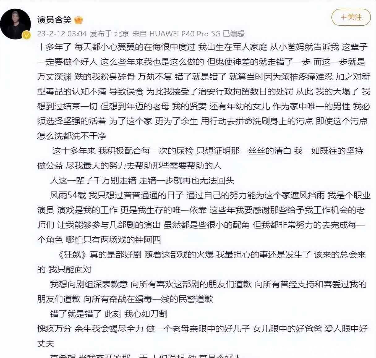 其实在2023年,《狂飙》剧组让含笑演了一个毒贩角色,观众发现他就是当年吸毒的演员含笑,剧组马上删掉他的戏份,还发声明说他们用的是化名“韩朴俊”,不知道他的背景,含笑自己也出来道歉,说当时是误食新型毒品,很多人当时就不相信这个说法,现在看到他直播卖货,更让人觉得这件事还没完。